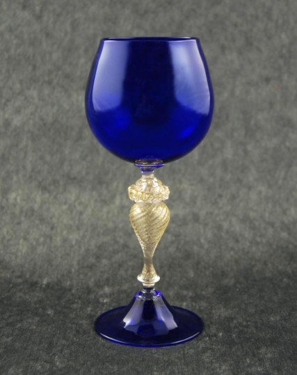 Creazione raffinata, figlia del gusto del Maestro vetraio, questo calice è realizzato in vetro di Murano soffiato a bocca. Il vaso, classico nella forma, è realizzato in vetro blu levigato come la base. Accostato alla brillantezza dello stelo in cristallo opaco, semplice ed elegante, crea un contrasto acceso che esalta la signorilità di questo pezzo unico.