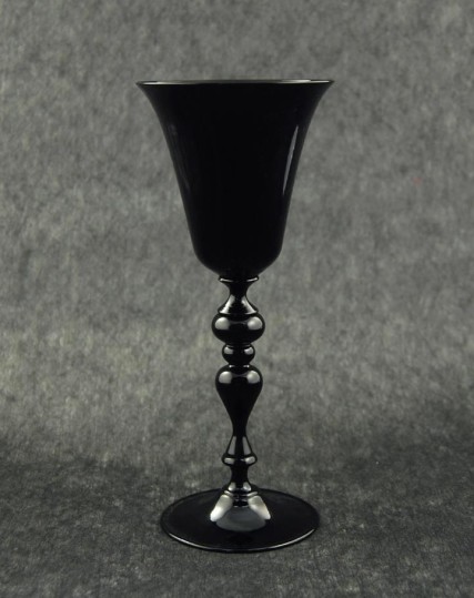 Opera di straordinaria eleganza, questo calice è adatto sia ad ambienti classici che moderni. La superficie liscia fa in modo che l‘eleganza del nero lasci spazio a sobri riflessi bianchi in un gioco di chiaroscuri affascinante. Il balaustro lungo e il più piccolo raccordo tenuti assieme da un raccordo sferico sostengono la campana rovesciata.