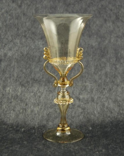 Questo pezzo unico è stato concepito dal Maestro come un mix di vetro di Murano trasparente e oro luccicante. La struttura è quasi interamente realizzata in vetro di Murano soffiato a bocca, con attente aggiunte di elementi dorati. La cura per il dettaglio la si vede analizzando i pregiati intarsi in cristallo e le decorazioni in oro finemente lavorato.