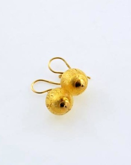 Orecchini di perla di vetro di Murano realizzate a mano con tecnica “a Lume” a foglia d‘oro. Gli orecchini sono composti da un‘unica perla in vetro color cristallo con anima in foglia d‘oro 24k all‘interno. La montatura degli orecchini è in argento italiano 925 bagno oro. Dimensioni