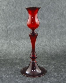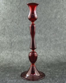rnCandelabro rosso a quattro elementi soffiato a bocca a vetro liscio con piede a cono. Lo stelo è composto da un globo ovale sormontato da un lungo balaustro. Disponibile nelle varian...