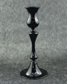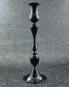 rnCandelabro nero a quattro elementi soffiato a bocca a vetro liscio con piede a cono. Lo stelo è composto da un globo ovale sormontato da un lungo balaustro. Disponibile nelle variant...
