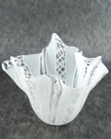 rnCiotola de Fornase a forma di fazzoletto di vari colori a fantasia del Maestro e movimenti di vetro irregolari. La ciotola è realizzata rotolando soffiando a bocca il vetro incandesc...