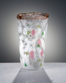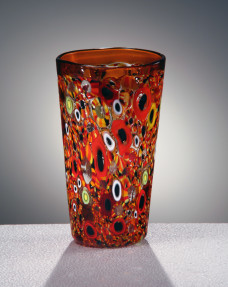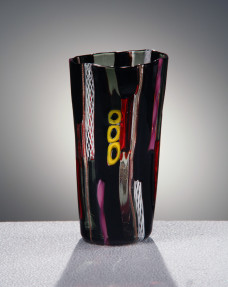 rnRaffinata creazione del maestro Hans Neidhardt, questo vaso in vetro di Murano soffiato e lavorato a mano si caratterizza per una cromia realizzata con inserzioni di murrine di crist...