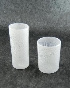 Set of 6 tumblers in Murano glass. The set consists of 3 pieces 3 pieces ups and downs, worked in colored glass crystal with white watermark. Available in colors: pink, green and blue.